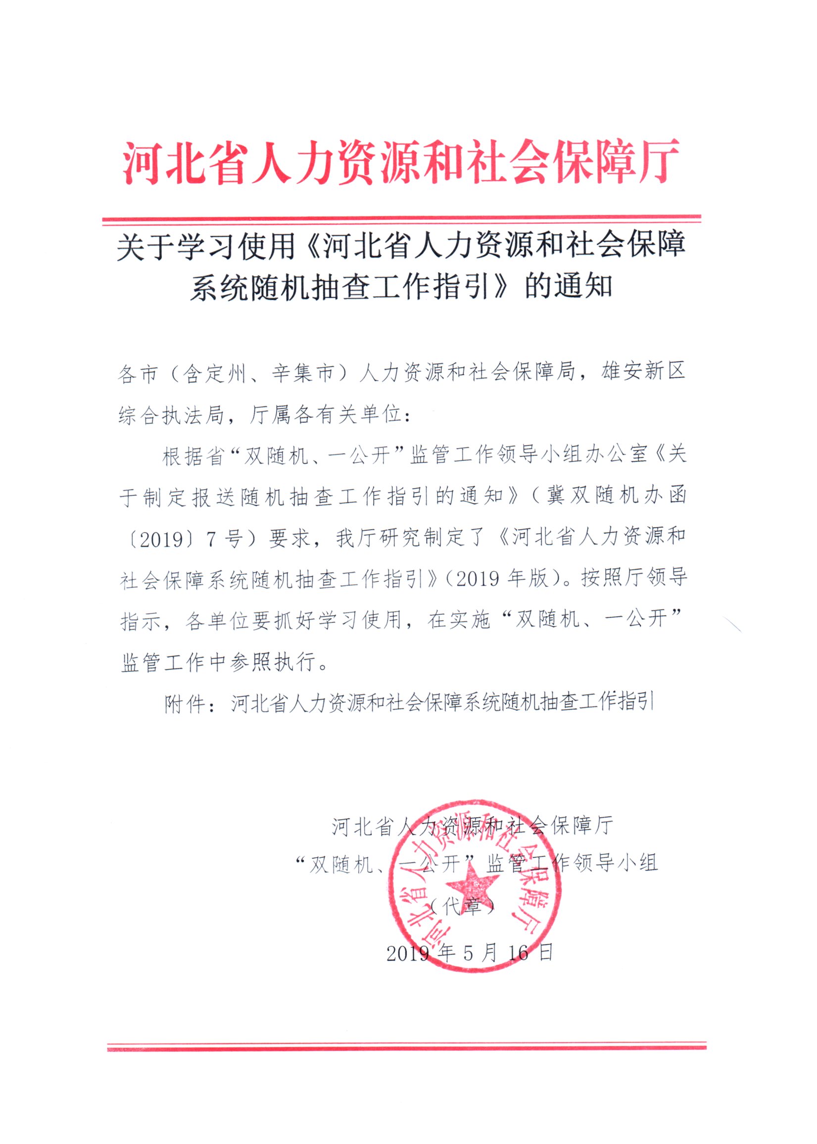 關于學習使用《河北省人力資源和社會保障系統(tǒng)隨機抽查工作指引》的通知
