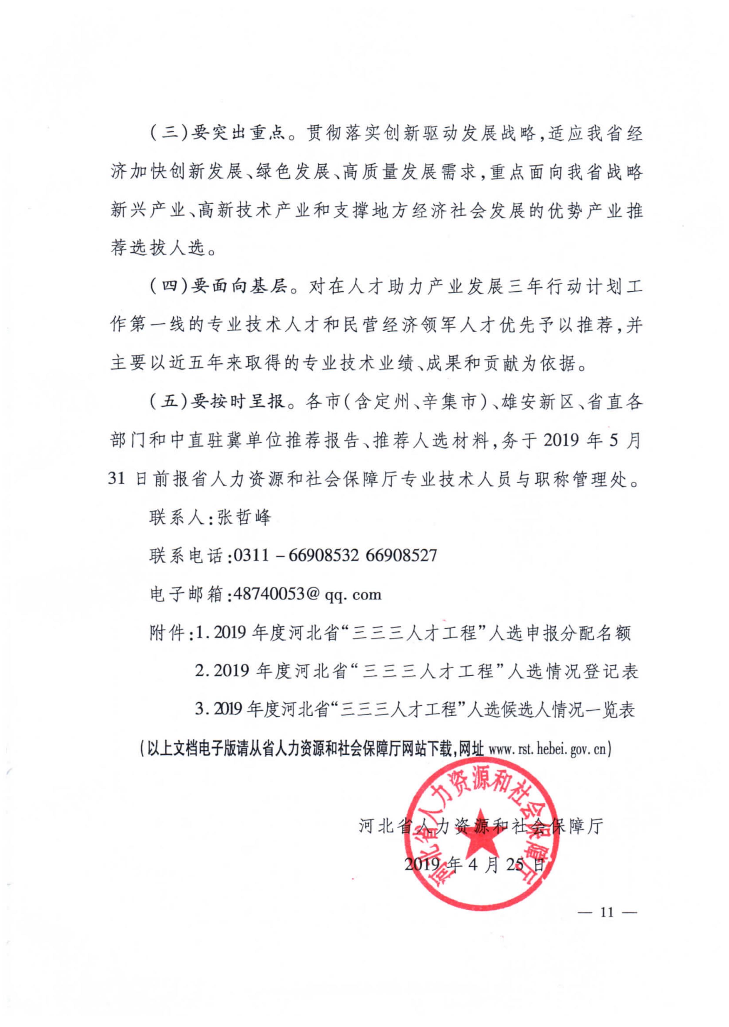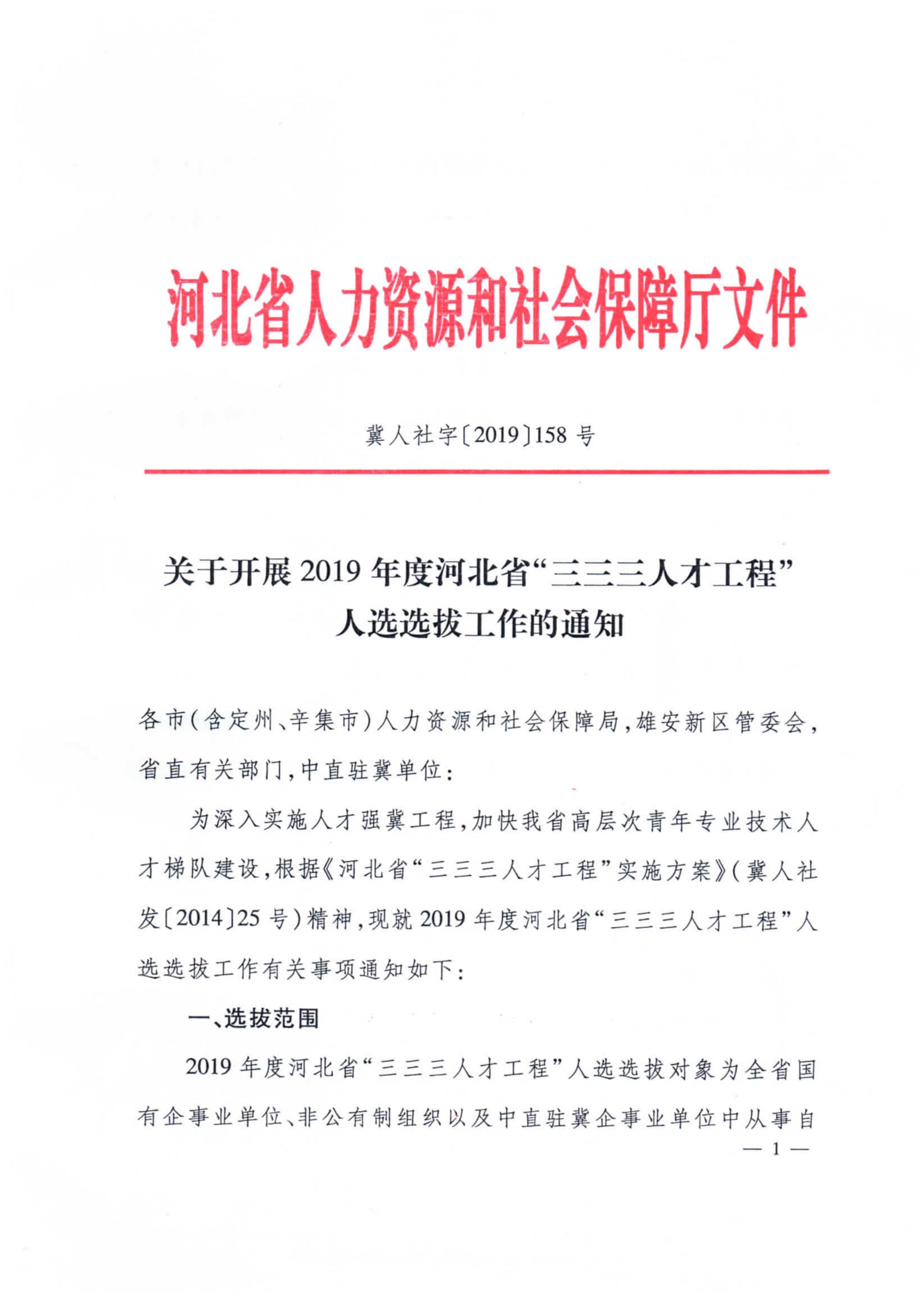 關于開展2019年度河北省“三三三人才工程”人選選拔工作的通知